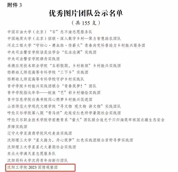 11月24日,共青团中央青年发展部公布了2023年“镜头中的三下乡”征集活动遴选结果,我校经济与管理学院国情观察团被评为优秀图片团队,经济与管理学院团总支书记李祎琳、2021级学生陈思博分别被评为优秀指导教师与优秀通讯员,我校国情观察团社会实践团队已连续七年获得共青团中央嘉奖。